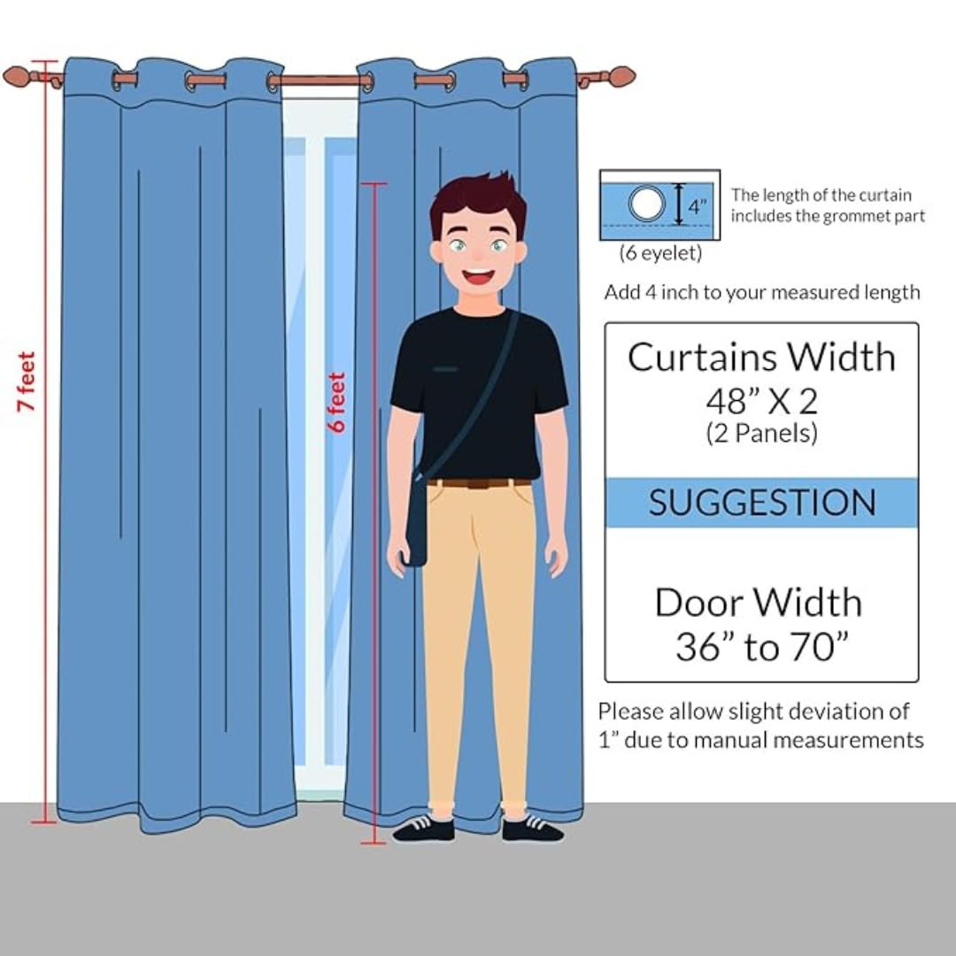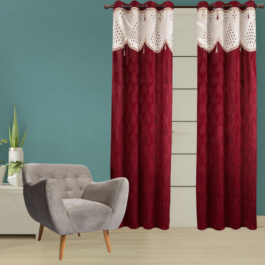 Modern Wave Panel Polyester Curtains for Door 7 Feet, Pack of 2, Maroon (Maroon, 7 Feet (2 Piece))